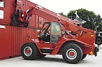 Модельный ряд телескопических погрузчиков Manitou включает пять машин большой грузоподъемности. Недавно эта компания также представила свой новейший погрузчик из модельного ряда Maniscopic – модель МНТ 10120, способную поднимать груз массой до 10 т. В модельном ряду Manitou она занимает среднее положение, так как грузоподъемность машин этой фирмы составляет от 6,5 до 16 т. Новая машина оборудована двигателем Mercedes Turbo мощностью 170 л.с., гидростатической трансмиссией с полным приводом, всеми управляемыми колесами и рулевым управлением с режимом «крабовый ход». Помимо этого погрузчики Maniscopic могут оснащаться большим количеством различных сменных орудий, включая вилочные захваты, лебедки с усилием 14 и 16 т, крановую стрелу и захваты для монтажа колес большого диаметра.
