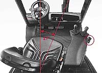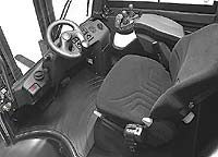 Очень удобно сиденье оператора: в новой серии погрузчиков оно регулируется в зависимости от веса оператора, может вращаться и оборудовано ремнем безопасности. Система контроля LLC (Linde Load Control), встроенная в правый подлокотник кресла, позволяет водителю при помощи одного или двух джойстиков управлять всеми рабочими операциями безопасного подъема груза с учетом его массы и высотой подъема, а кроме того, выполняет многие другие дополнительные функции: постоянного контроля всех гидравлических характеристик, положения мачты и скорости передвижения погрузчика, ограничения угла наклона мачты, замедления и уменьшения хода подъема мачты при достижении крайних положений. Пневмоподвеска практически полностью устранила вибрации и их влияние на оператора. Дополнительную защиту от толчков при движении обеспечивает также оптимальная конструкция мостов.