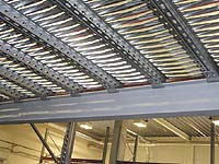 В качестве напольного покрытия мезонинов используется перфорированный настил, выпускаемый в открытом (рис. 3) и закрытом вариантах. Открытый настил имеет несколько большую поперечную жесткость благодаря наличию шлицов (ребер жесткости) и более удобен с точки зрения пожарной безопасности: например, он