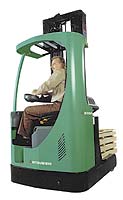 Например, если для нормальной работы самого компактного (трехопорного) погрузчика минимальная ширина межстеллажного прохода должна составлять не менее 3,3 м, то у ричтрака она почти такая же, как и у самоходного штабелёра, которым управляет стоящий или сидящий оператор, – 2,7 м. Устойчивость ричтрака достигается не наличием противовеса, как у обычного погрузчика, а за счет двух консолей с колесными опорами, что позволяет расположить центр тяжести груза внутри контура опорных и приводного колес.