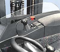Место водителя, пульт управления и педали во всех моделях регулируются в зависимости от телосложения водителя. Для управления движением используются мини-руль и педаль, а операции гидравлическими функциями могут осуществляться как с помощью джойстика, так и четырех рычагов (выбор этого элемента конструкции производится заказчиком, что бывает достаточно редко), это обеспечивает одновременное выполнение всех возможных движений без изменения мощности. Управление ричтраками осуществляется с помощью импульсной транзисторной системы MOSFET. Грузоподъемник оснащен устройством бокового смещения вил, а сиденье водителя – системой гидравлического демпфирования. На пульте управления размещены: индикатор готовности к работе, электронный указатель степени разрядки аккумулятора с отключением подъема, счетчик рабочих часов, указатель степени износа графитовых щеток электродвигателей, индикатор состояния ручного тормоза, управление вперед, направление хода вперед/назад, указатель времени следующего технического и сервисного обслуживания.