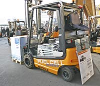 Посетители Международной торговой выставки MHIA ProMat 2007 (Чикаго) могли видеть опытный образец погрузчика FCHV-F с топливной ячейкой, представленный компанией Toyota Material Handling, USA, Inc. (Ирвин, шт. Калифорния). Модель создана Toyota Industries Corporation (TICO) в сотрудничестве с Toyota Motor Corporation (TMC) на основе гибридной системы, которая состоит из компонентов, опробованных в автомобилестроительном подразделении японского концерна. Хотя погрузчик достаточно длительное время находится в стадии разработки, его присутствие на ProMat указывает, что мировой лидер промышленности индустриального транспорта очень серьезно относится к идее создания топливных элементов и считает ее весьма перспективной.