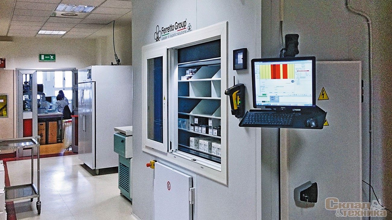 Автоматизированные лифтовые системы Vertimag компании Ferretto Group (Италия) предназначены для хранения/ размещения штучных и тарных видов ТМЦ (рис. 1). Для перемещения полок с грузом в них используется лифтовый механизм, управляемый с помощью дисплея. Сотрудник формирует задание в автоматизированной системе управления складом, после чего груз поступает в окно выдачи.