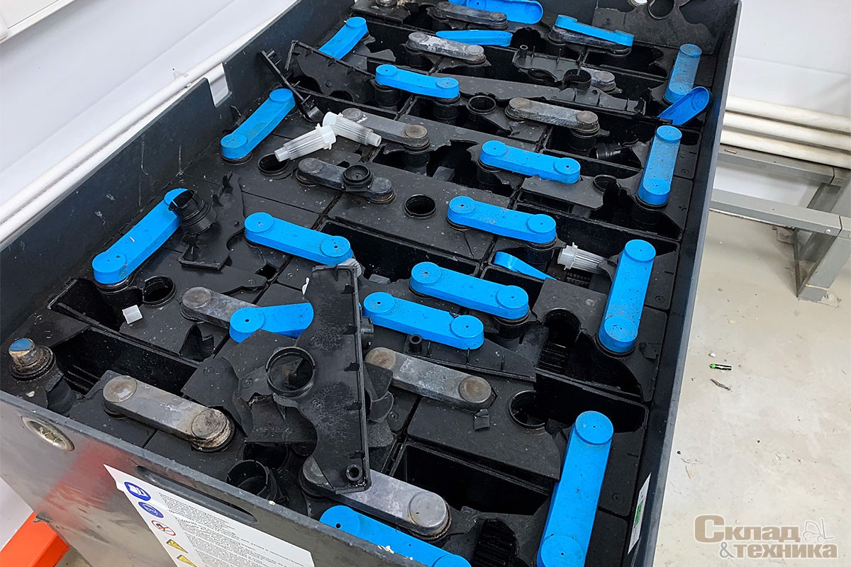 Работа на старых аккумуляторах более одного разряда в день. На новом аккумуляторе литр воды испаряется за пять-семь циклов работы, а на старых — за один-два. Чем ниже уровень электролита, тем больше внутри элемента пространства для скапливания водорода. Это особенно опасно для техники с высокими аккумуляторами, например, узкопроходных высотных штабелеров.