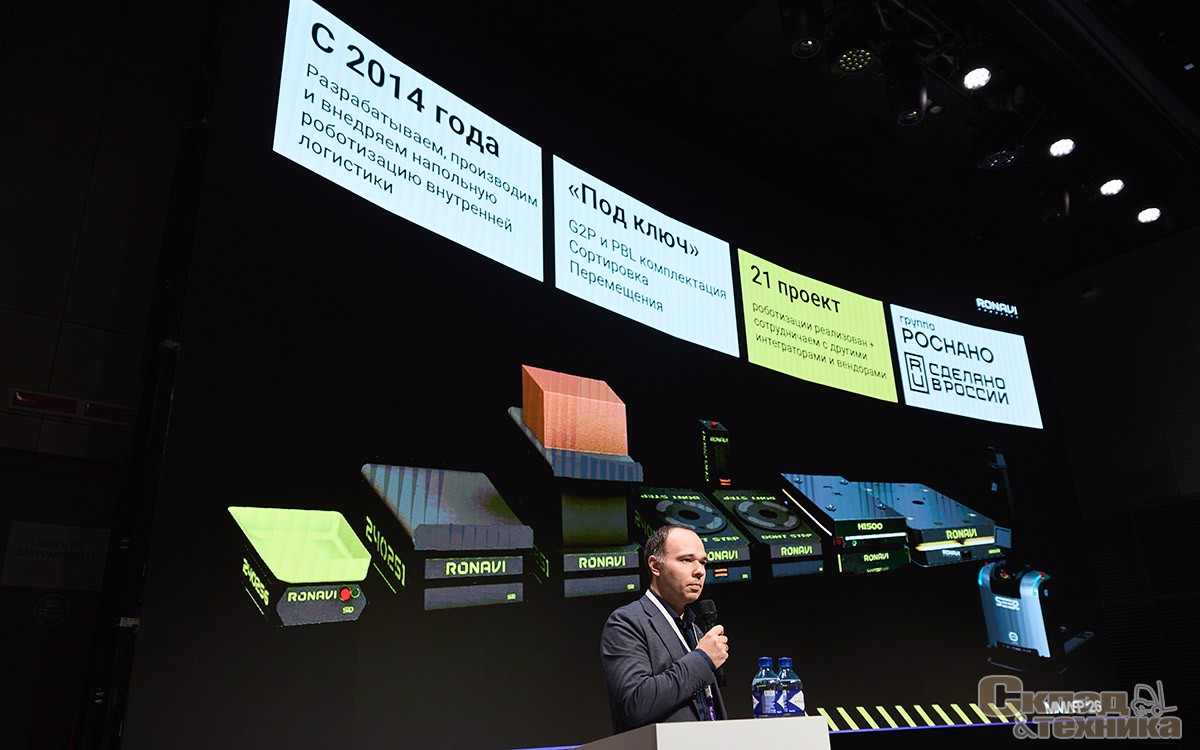 Генеральный директор Ronavi Robotics Иван Бородин выступил в сессии «Роботизация склада: стратегии успешного внедрения новых технологий» с докладом «Цена роботизации: за что на самом деле платит бизнес». В фокусе выступления – экономика проектов роботизации: