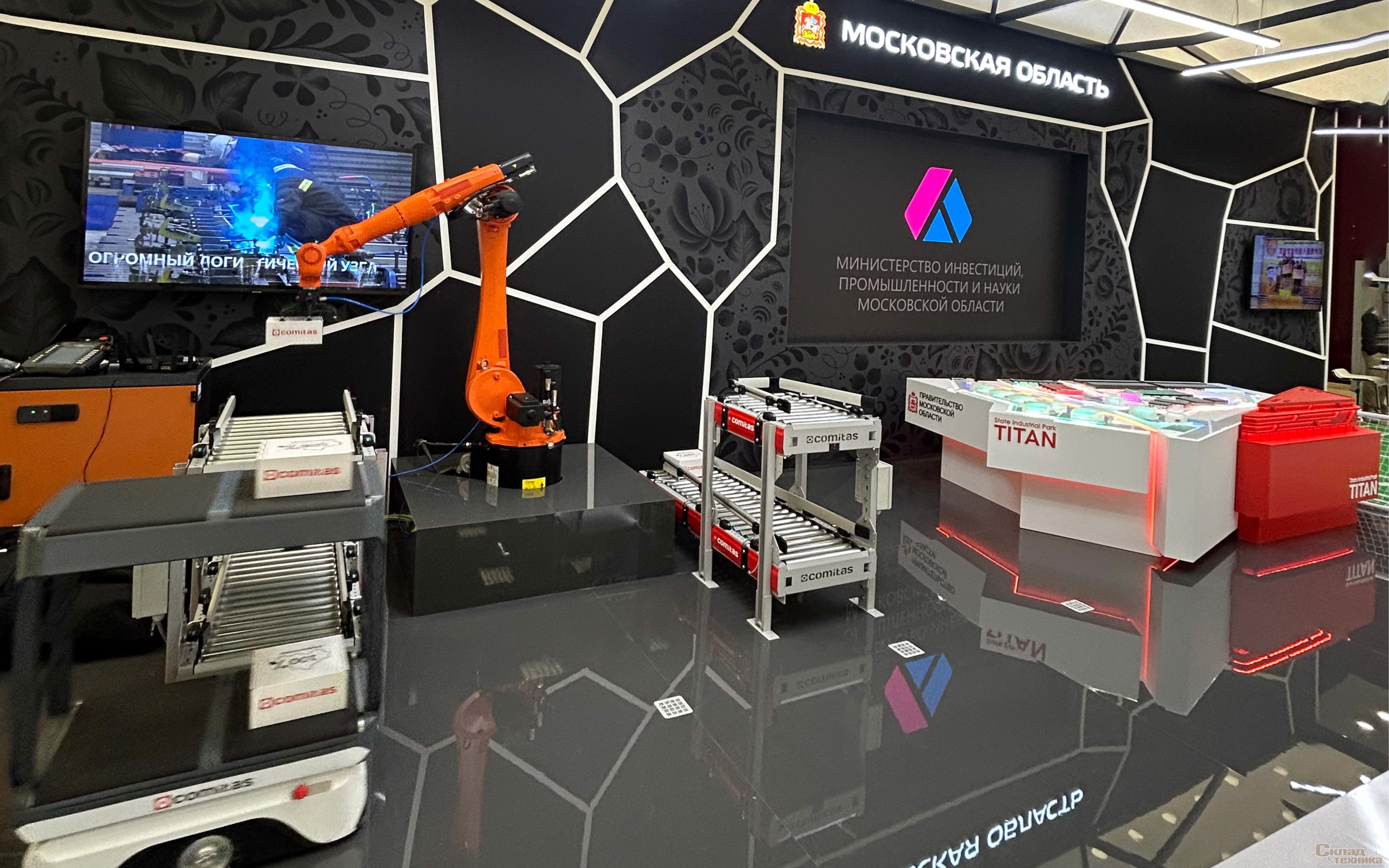 Представленные на стенде робот-сортировщик и конвейерное оборудование созданы на производстве COMITAS в Подмосковье. Собственное логистическое оборудование и компоненты для автоматизации и роботизации Компания производит с 2022 года, успешно реализуя программу импортозамещения при поддержке Минпромторга России.